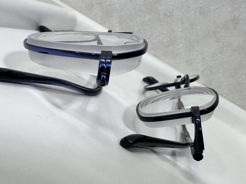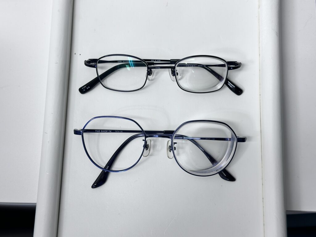 ちなみに以前使われていたメガネと比較してみました。厚みが全然違うのがお分かりかと思います。あっ、度数はほぼ同じです。