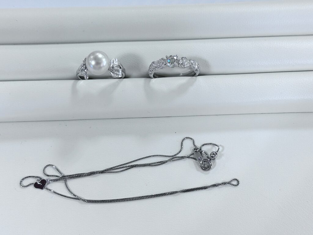 指輪はサイズ直し、ネックレスは切れたのでロー付け修理です。