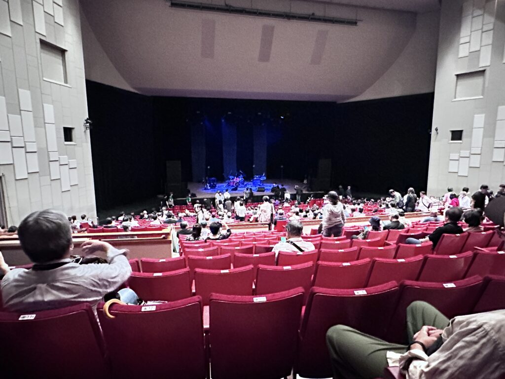 収容人数1000人ほどのコンサート会場です。最後列にはPAがずらり。