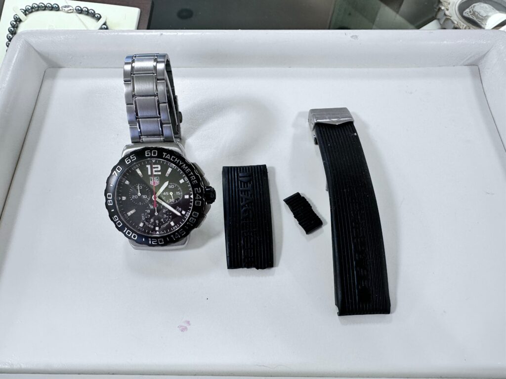 タグ・ホイヤーの腕時計です。もともとウレタンバンドがついているタイプでしたが、そのウレタンが切れてしまいました。