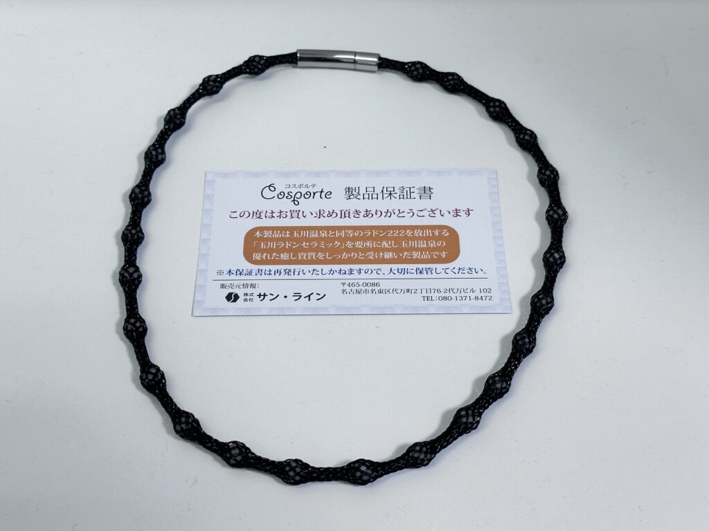 そこでメーカーさんは貴金属を使わない北投石ネックレス「コスポルテ」を発売しました。